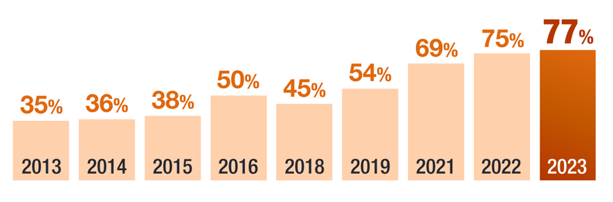 Quando o tema é direcionado exclusivamente a novos talentos, segundo a pesquisa Global Talent Shortage 2023, realizada pela Manpower Group, 4 em 5 empregadores em todo o mundo relatam dificuldade em encontrar o talento qualificado de que precisam em 2023. Acompanhando a série histórica da pesquisa, esse dado representa um aumento de 2 pontos percentuais ano a ano e mais que o dobro da dificuldade relatada em 2015 (que era 38% contra 77%).